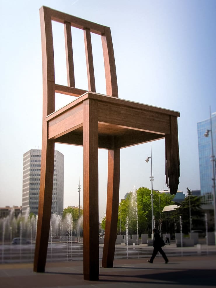 Sur la place des Nations, la Broken Chair dresse fièrement ses 12 mètres face au Palais des Nations. Créée par Handicap International, cette chaise monumentale et amputée d’un pied incarne depuis 1997 la lutte contre les mines antipersonnel. Genève met ainsi en avant, sans discours, sa vocation humanitaire.